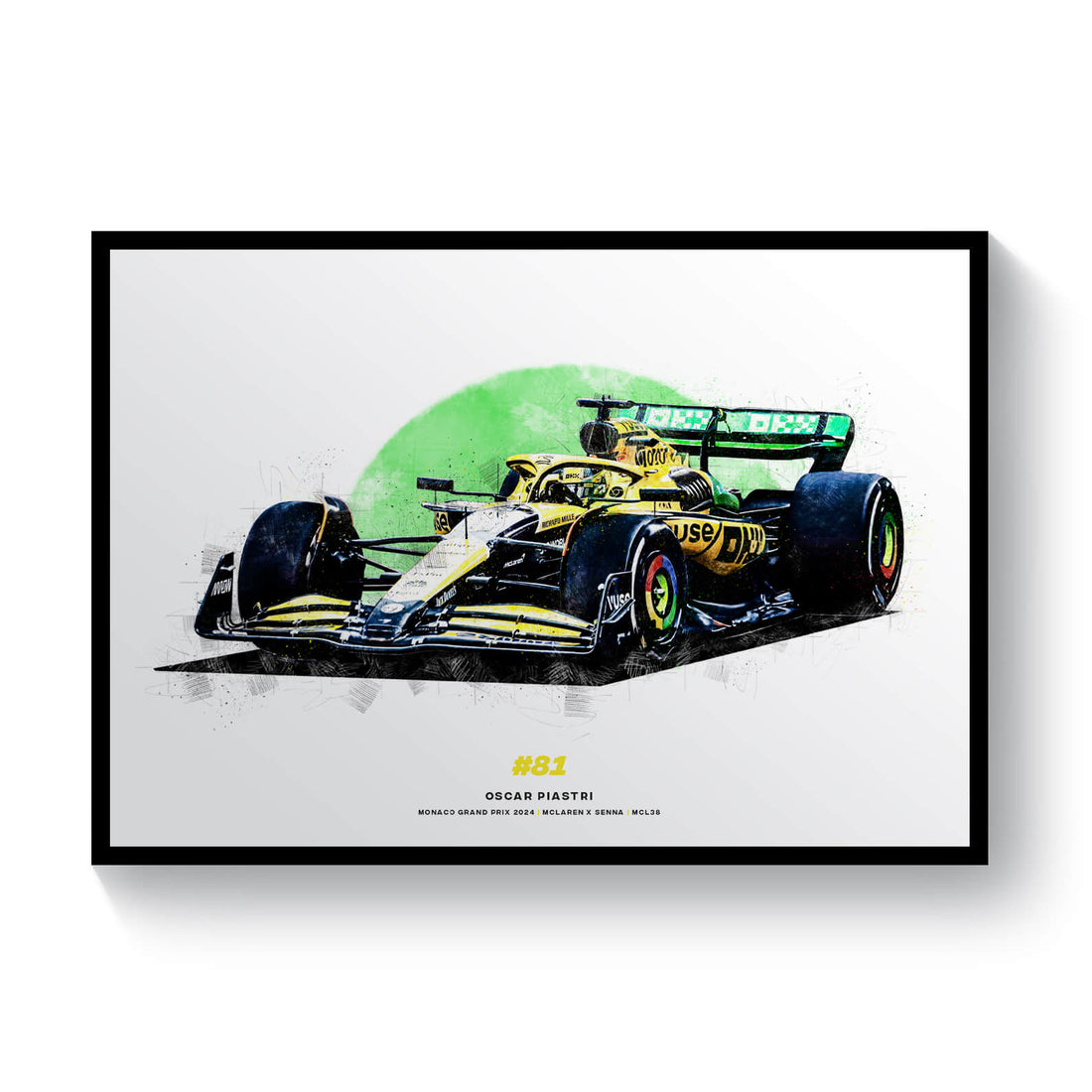 Oscar Piastri McLaren x Senna Monaco Livery MCL38, 2024 Formula 1 Car Print
