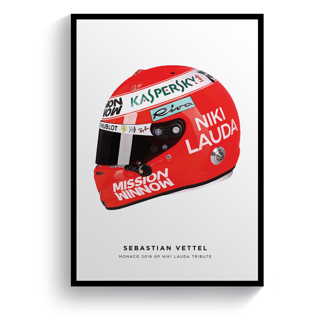 Sebastian Vettel Niki Lauda Tribute Monaco 2019 Formula 1 Helmet Print