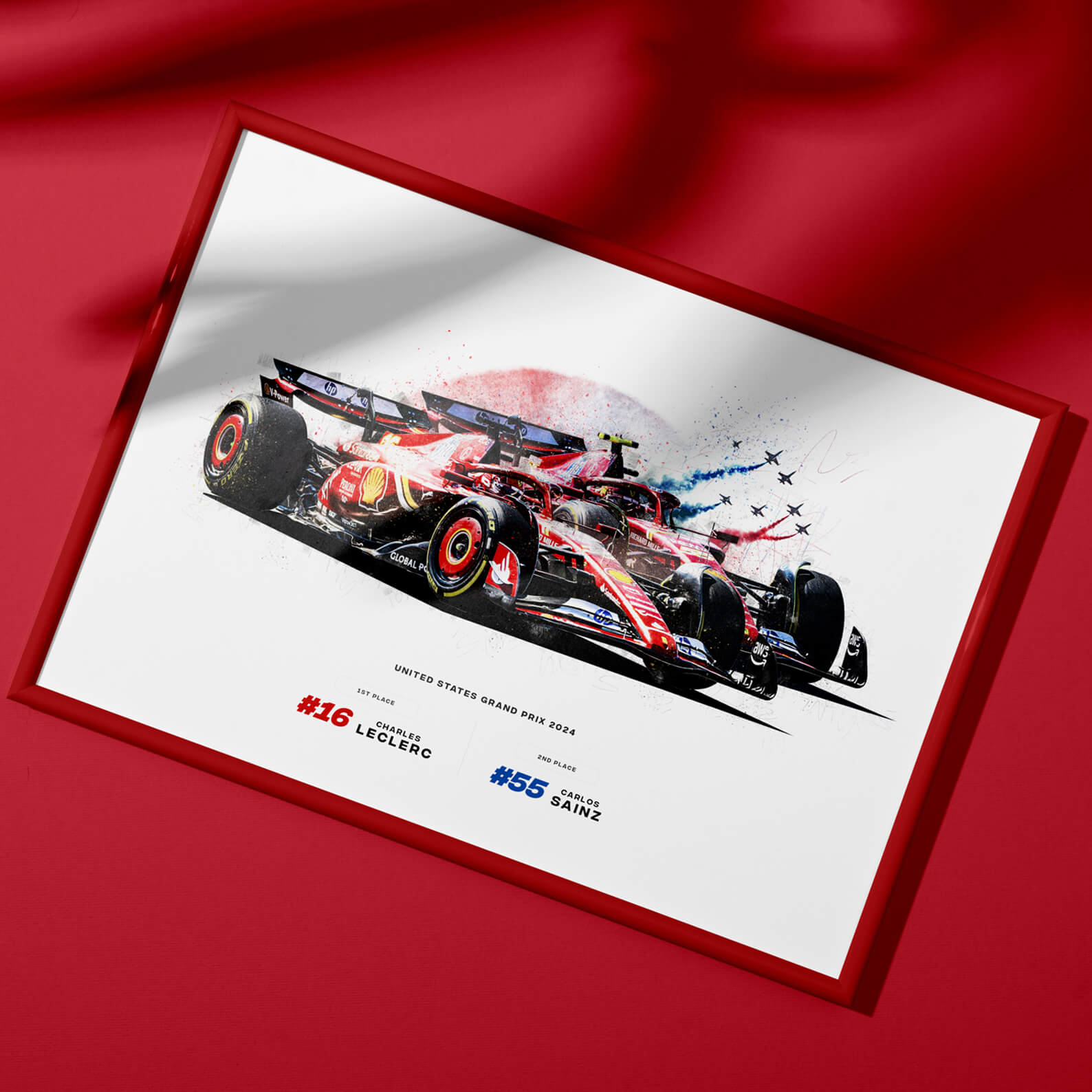 Charles Leclerc & Carlos Sainz, Ferrari 1-2 United States Grand Prix, 2024 Formula 1 Print