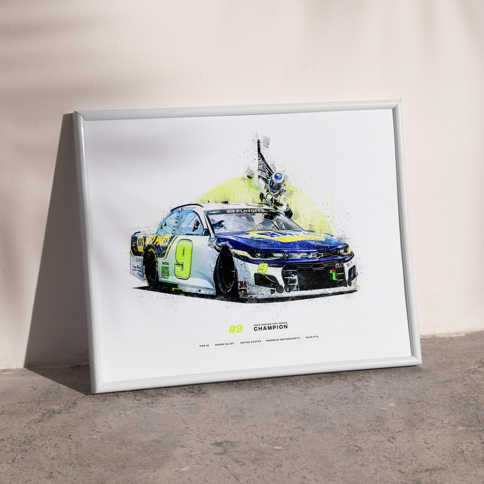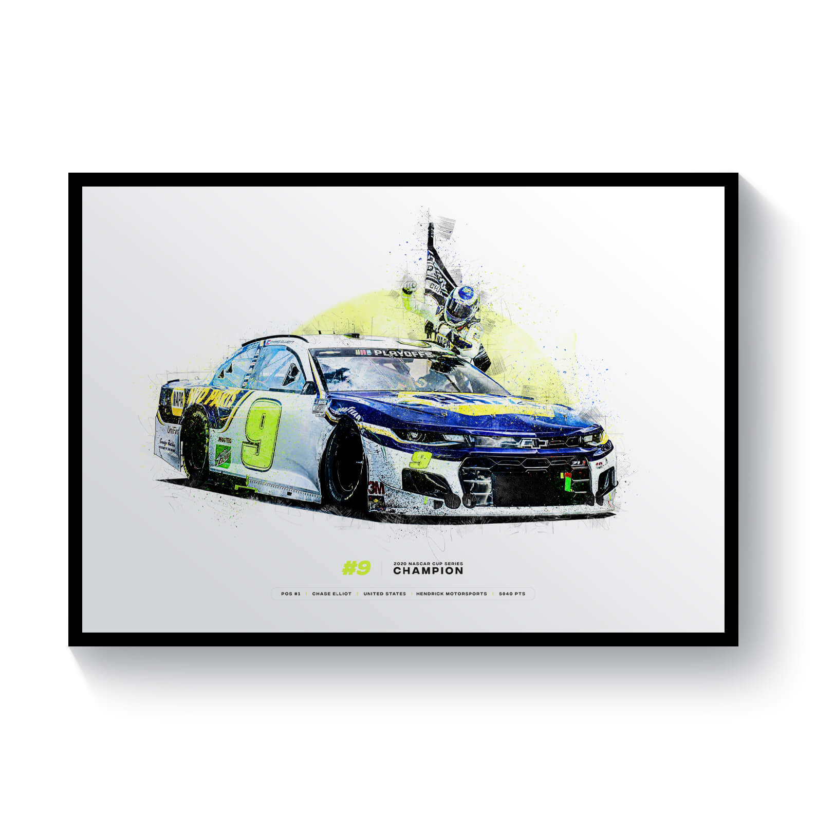 Celebrate Chase Elliott's monumental victory in the 2020 Nascar Cup Series with our exclusive Chase Elliott 2020 Nascar Cup Series Champion Art Print! Capturing the thrilling moment of triumph, this print is a must-have for any Nascar enthusiast or Chase Elliott fan.