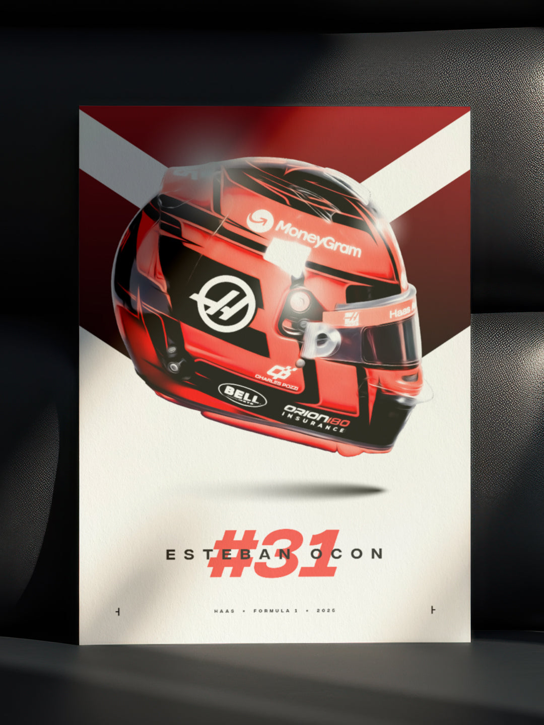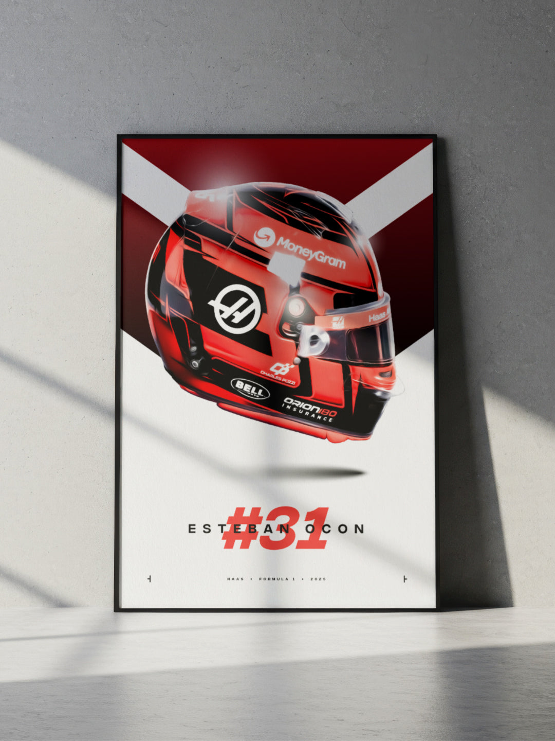 Introducing this stunning print of Esteban Ocon's Formula 1 helmet for the 2025 F1 season! This vibrant and detailed print showcases Ocon's signature helmet design with meticulous accuracy and his 2025 team, Haas.