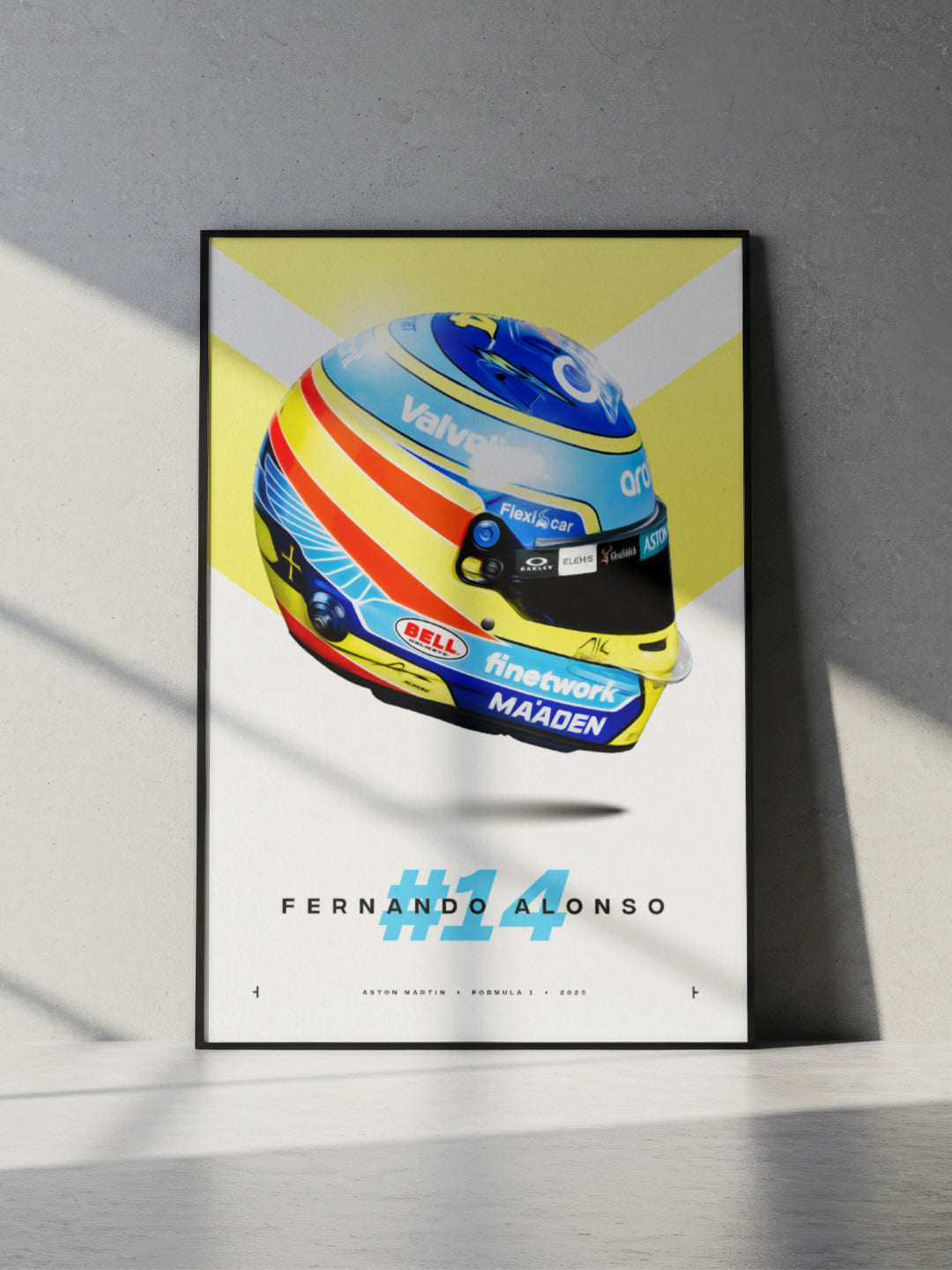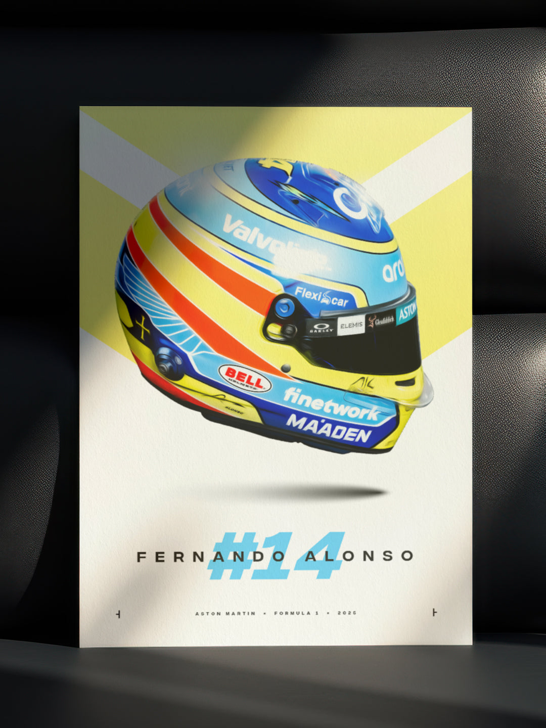 Fernando Alonso 2025 Helmet, Formula 1 Print