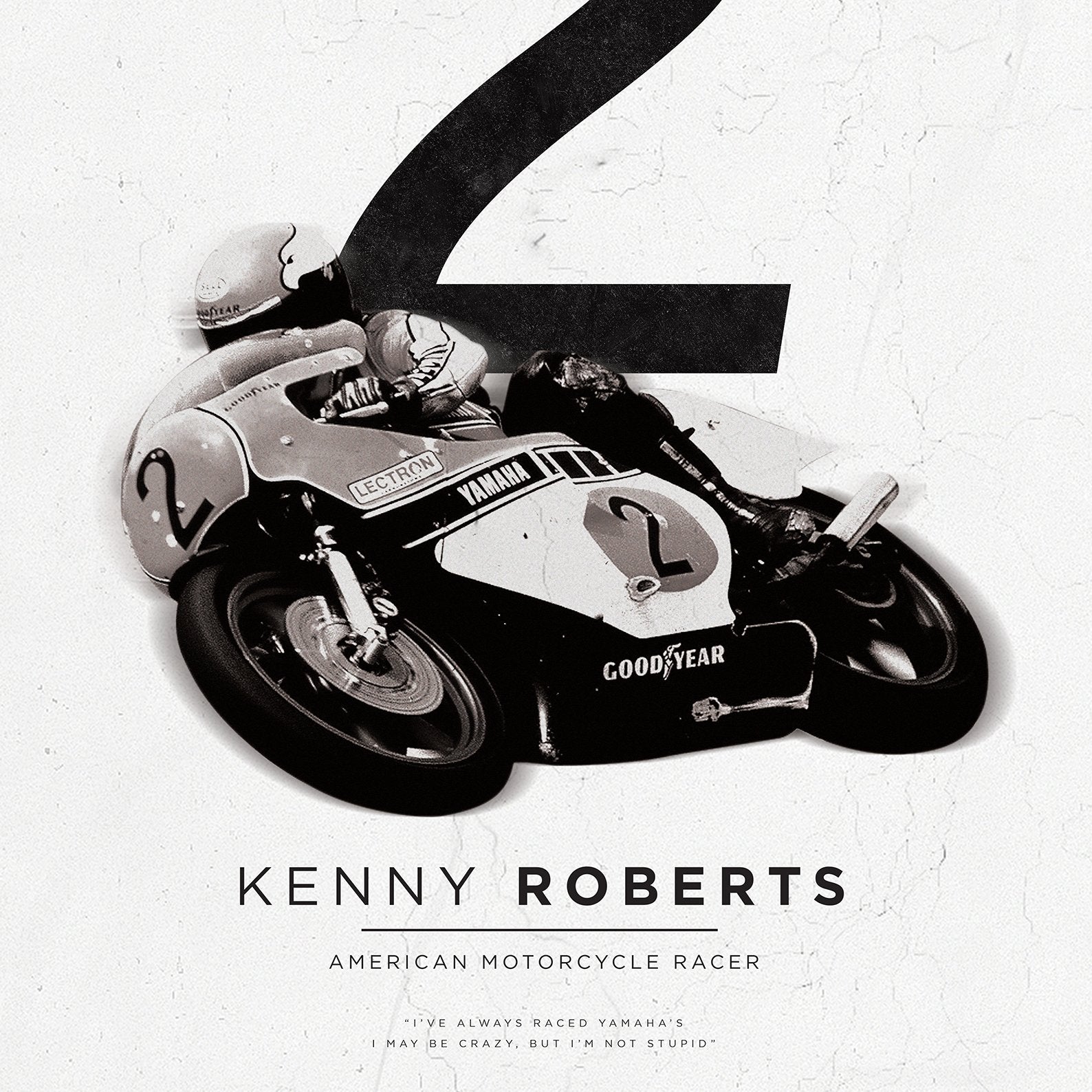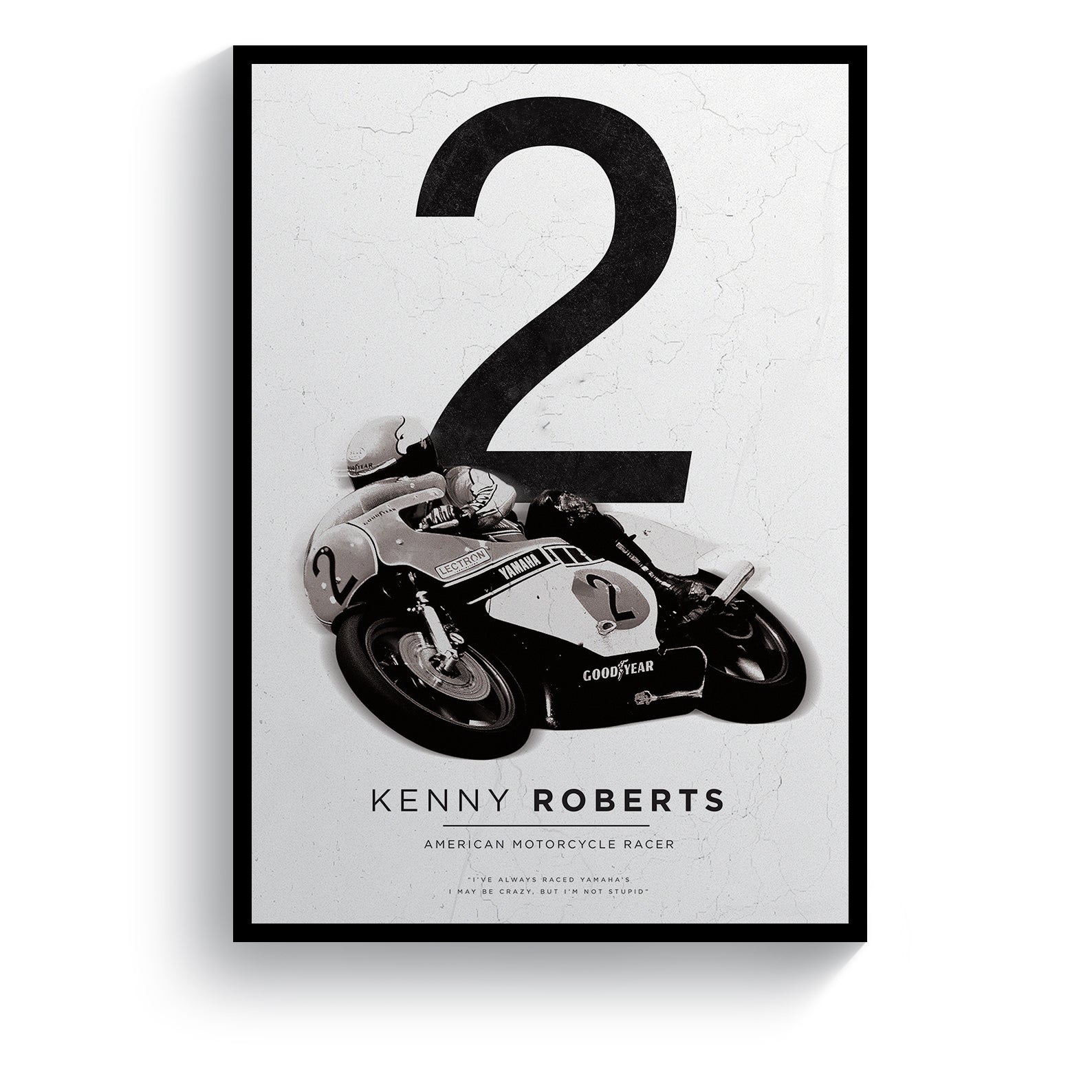 This print celebrates the career of Kenny Roberts, he became the first American to win a Grand Prix motorcycle racing world championship in 1978. This would make the perfect gift for any Kenny Roberts fan.