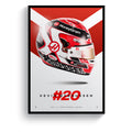 The print is produced on high-quality paper using the latest printing techniques, ensuring that every detail of the helmet design is rendered with crisp, vivid colours and razor-sharp clarity. Whether you're a dedicated fan of Kevin Magnussen or simply an enthusiast of motorsports and racing culture, this print is the perfect way to add a touch of energy and excitement to your home, office, or garage.