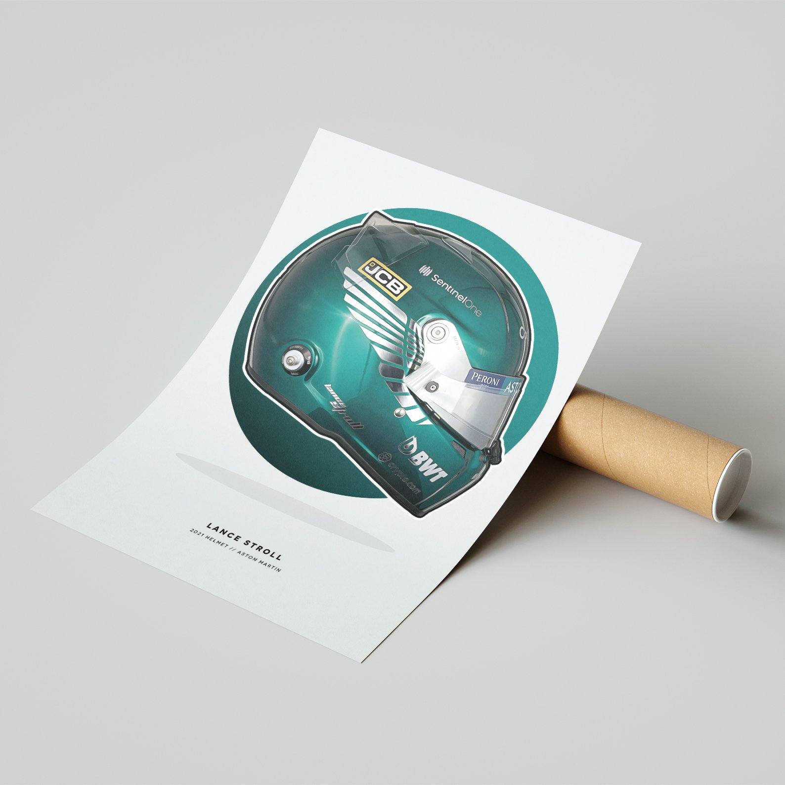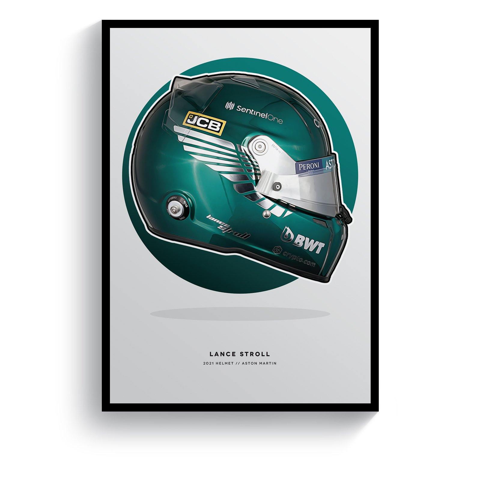 This print showcases Lance Stroll's 2021 season helmet, and is perfect for any fan of the Aston Martin Formula 1 racing driver. This F1 print has been digitally painted and would look great in your home, office or garage or it could make the perfect gift for the F1 fan in your life.