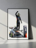 Celebrate Lando Norris’ unforgettable home victory at the 2025 British Grand Prix with this dynamic art print. Capturing the moment he climbed out of the MCL38 at Silverstone and raised his fist to the crowd, this piece brings the emotion, energy and chaos of that win straight to your wall.