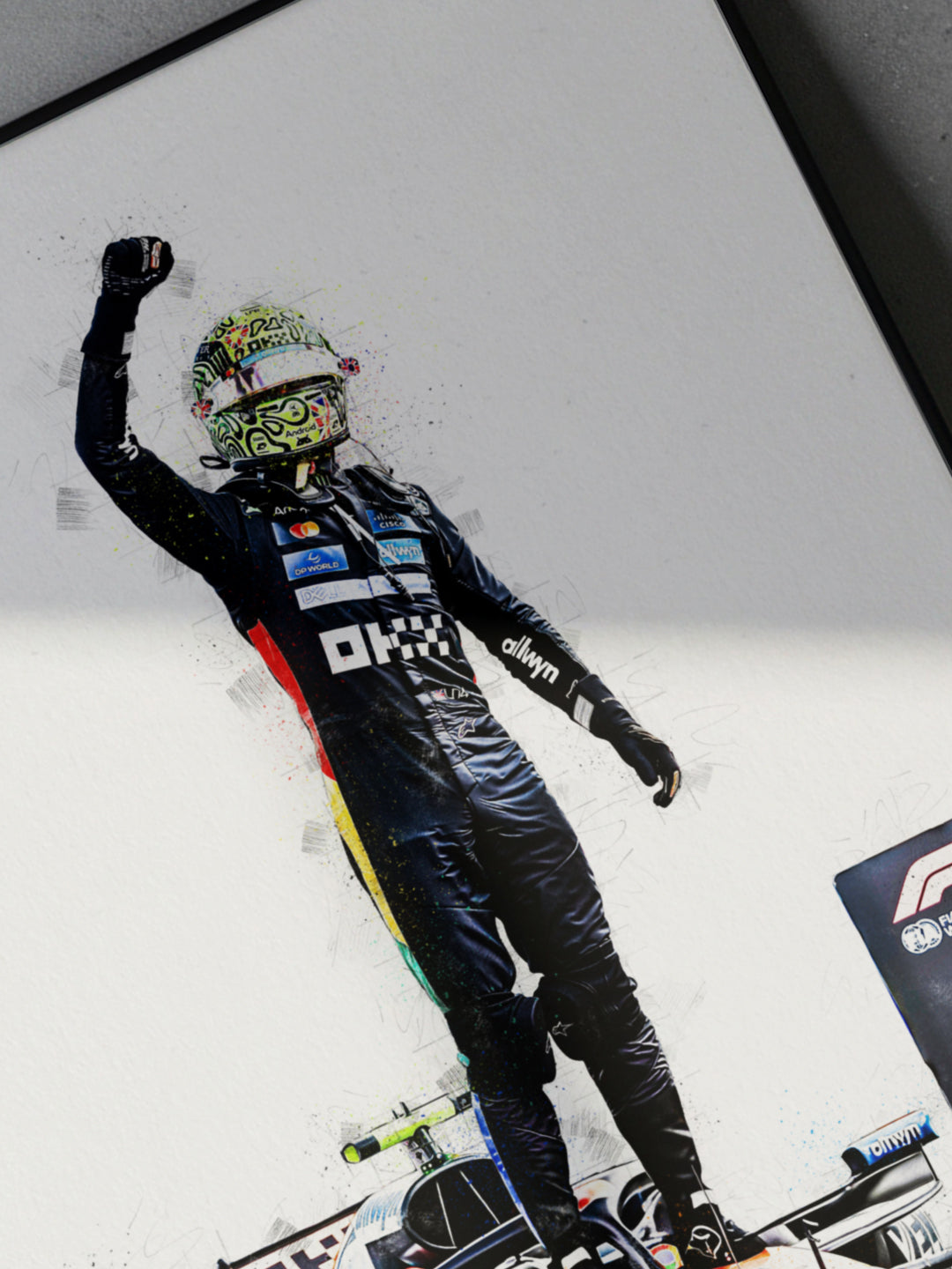 This is a standard edition print, so unlike the sold-out Silverstone limited edition, this one is here to stay. Perfect for McLaren fans, collectors and anyone who wants to relive one of Lando’s biggest career moments.