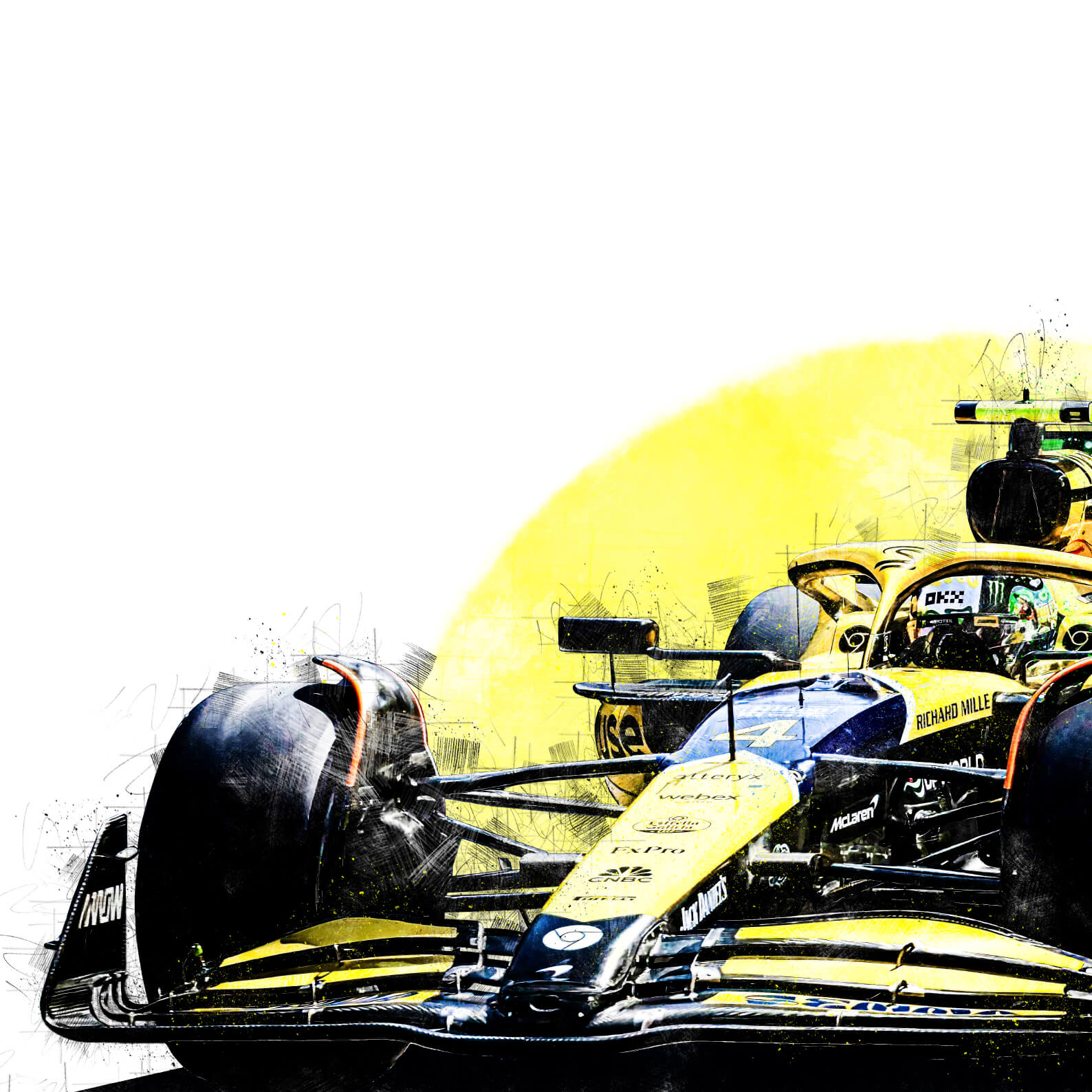 This print showcases Lando Norris' 2024 McLaren at the Monaco GP where he secured 4th place.