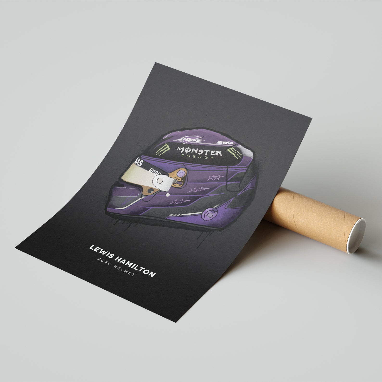 Lewis Hamilton debuted his revised helmet at the Austrian Grand Prix 2020 changing to a black and purple design from his original white and purple and carrying support for the Black Lives Matter movement. We felt that this very special helmet deserved a limited edition F1 print design style and we hope you like it as much as we do.