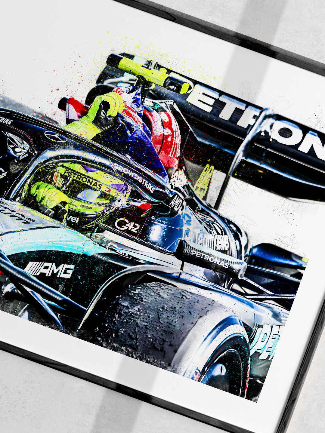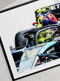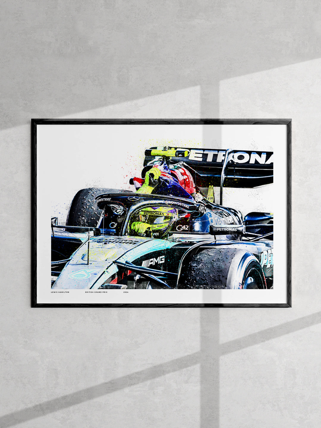 Featuring my detailed illustrated style with layered textures, sketch work and colour splashes, this standard edition print gives you the full atmosphere of that unforgettable win without the pressure of limited stock. A perfect addition for any Mercedes or Hamilton fan who wants a piece of Silverstone history on their wall.