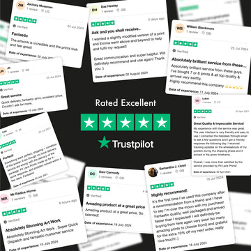 We are rated excellent on TrustPilot with over 100 rave reviews from our amazing customers! We love nothing more than to see how much you love our prints. Don't just take our word for it, read what our customers are saying here.