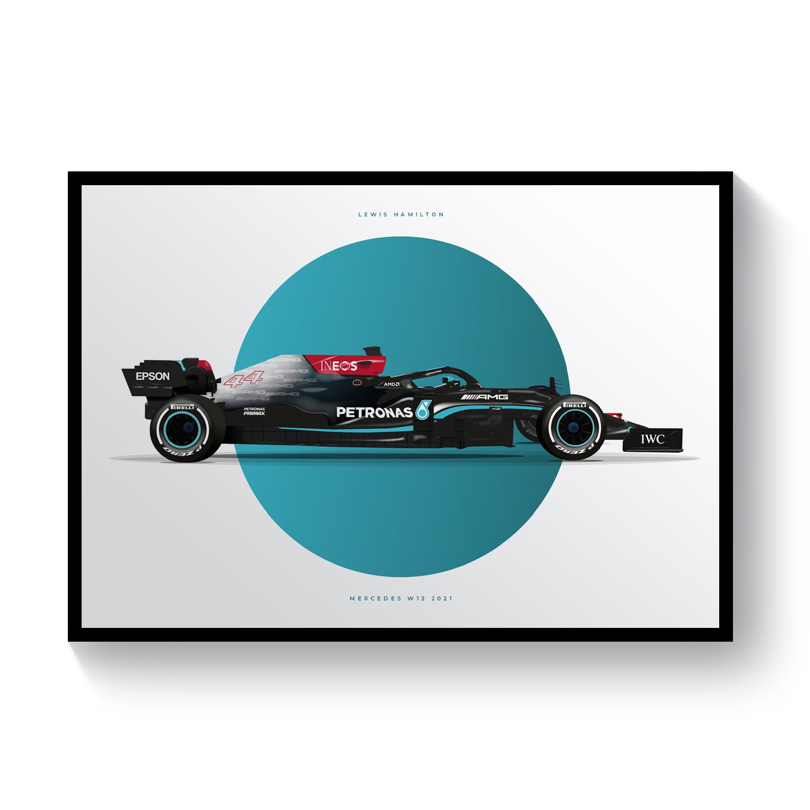 Lewis Hamilton Mercedes W12 2021 Formula 1 Car Print