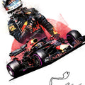 Expertly designed with an artistic sketch style, this print features striking paint splatters in vibrant reds and yellows, adding a dynamic and modern touch that will captivate any motorsport enthusiast. Perfect as a standout addition to any collection of F1 prints or as a unique piece of Daniel Ricciardo memorabilia, this print embodies both the precision of racing and the expressive flair of art.