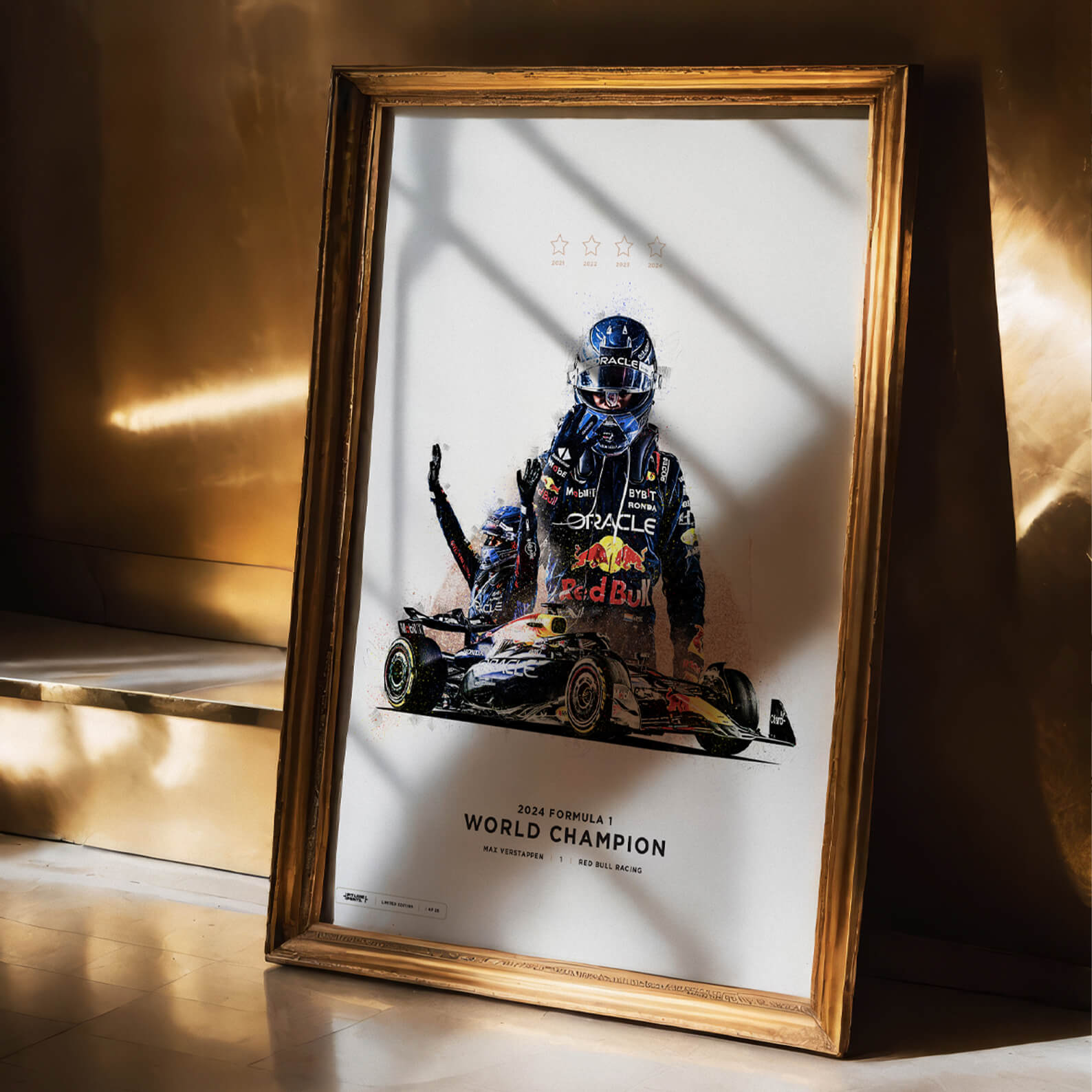 This art print is a must-have for Formula 1 enthusiasts and Max Verstappen fans, encapsulating a historic moment in motorsport. Secure your piece of racing history today before this limited edition is gone forever.