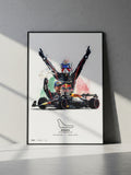 This print is part of a limited edition series, available in just 25 copies per size. Once sold out, it will not be restocked. A true collectorās piece for fans of Max Verstappen, Red Bull Racing and Formula 1 history.