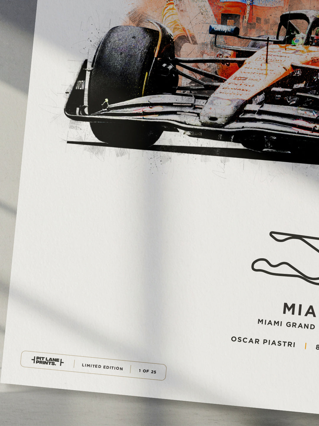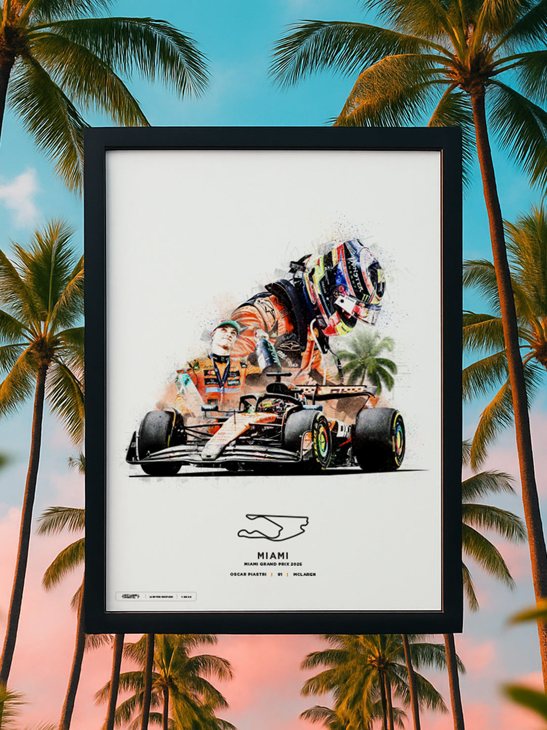 Secure yours now and celebrate one of the brightest young talents in Formula 1 with a piece of art that brings the heat of Miami and the precision of Piastri’s driving to your walls.