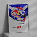 The print is produced on high-quality paper using the latest printing techniques, ensuring that every detail of the helmet design is rendered with crisp, vivid colours and razor-sharp clarity. Whether you're a dedicated fan of Max Verstappen or simply an enthusiast of motorsports and racing culture, this print is the perfect way to add a touch of energy and excitement to your home, office, or garage.