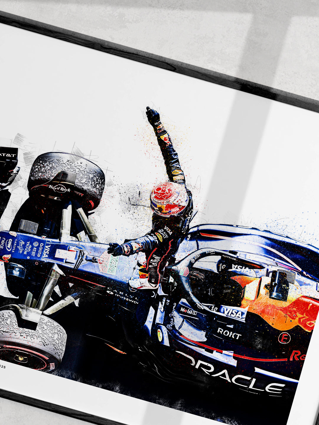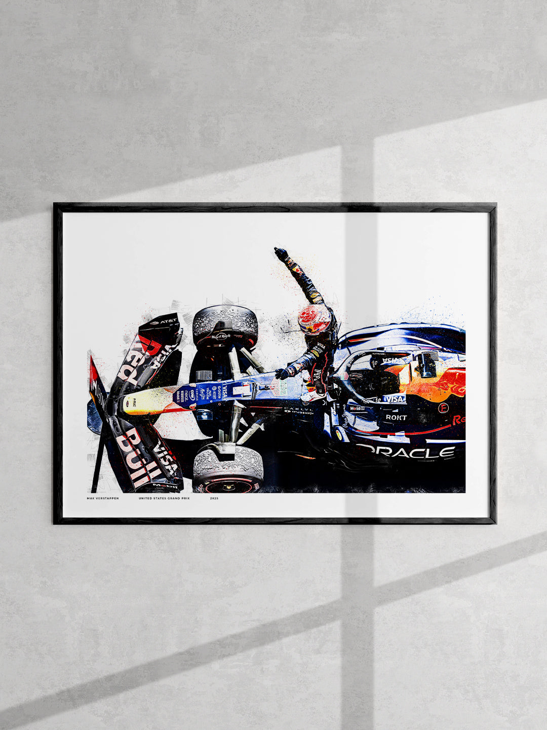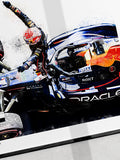 Celebrate Max Verstappen’s domination at the United States Grand Prix with this bold COTA 2025 art print. This piece captures the raw energy of his victory, blending dynamic colour, texture and movement into a striking tribute to one of his defining drives of the season.