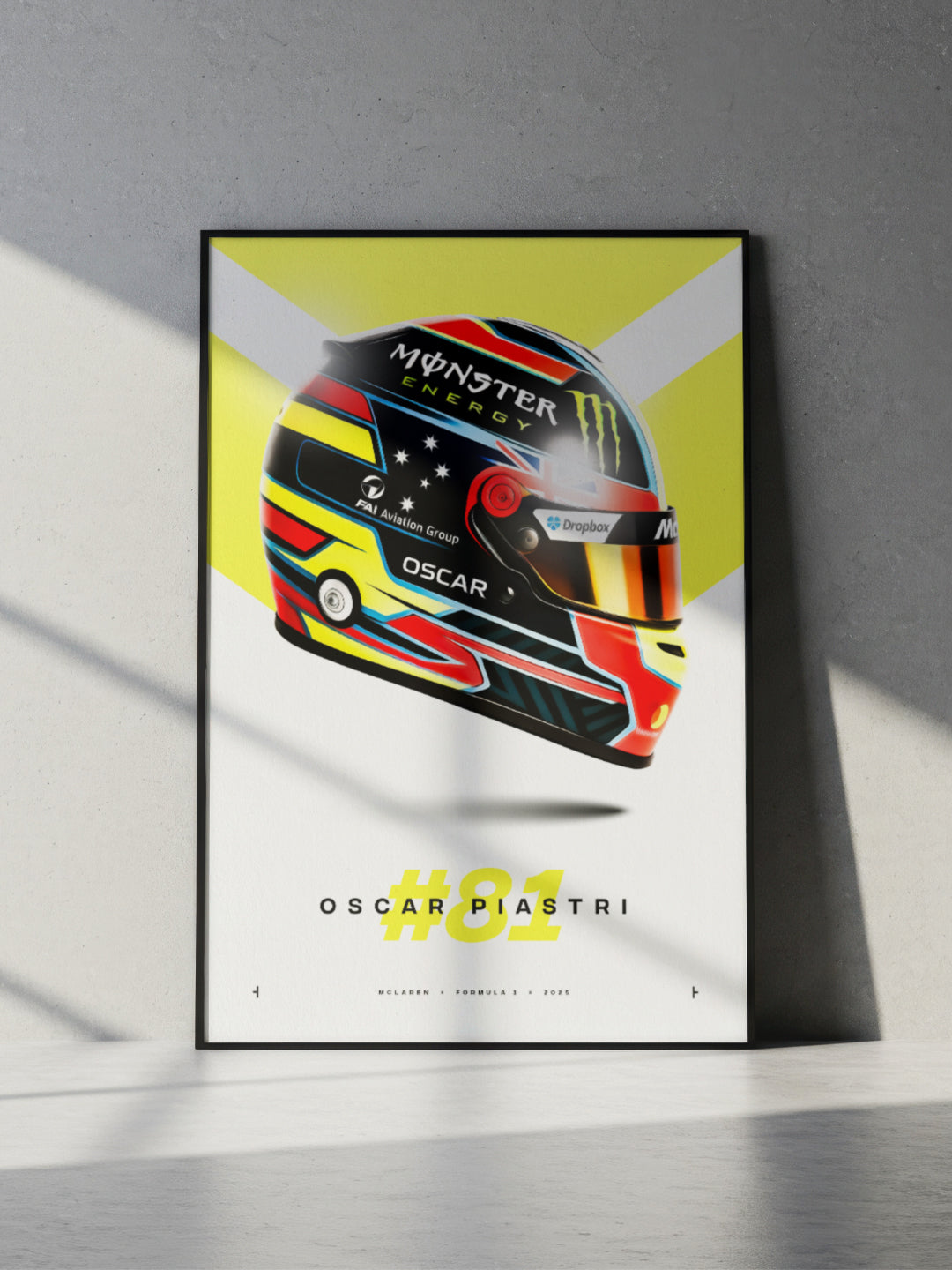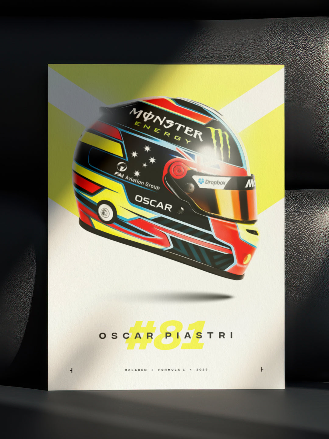Oscar Piastri 2025 Helmet, Formula 1 Print