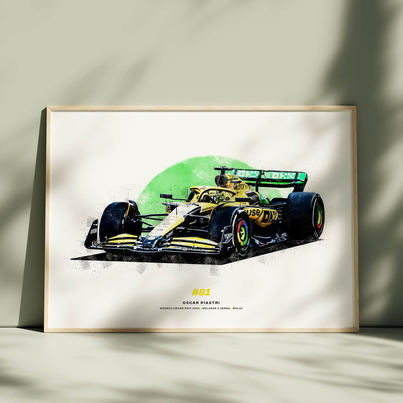 Oscar Piastri McLaren x Senna Monaco Livery MCL38, 2024 Formula 1 Car Print