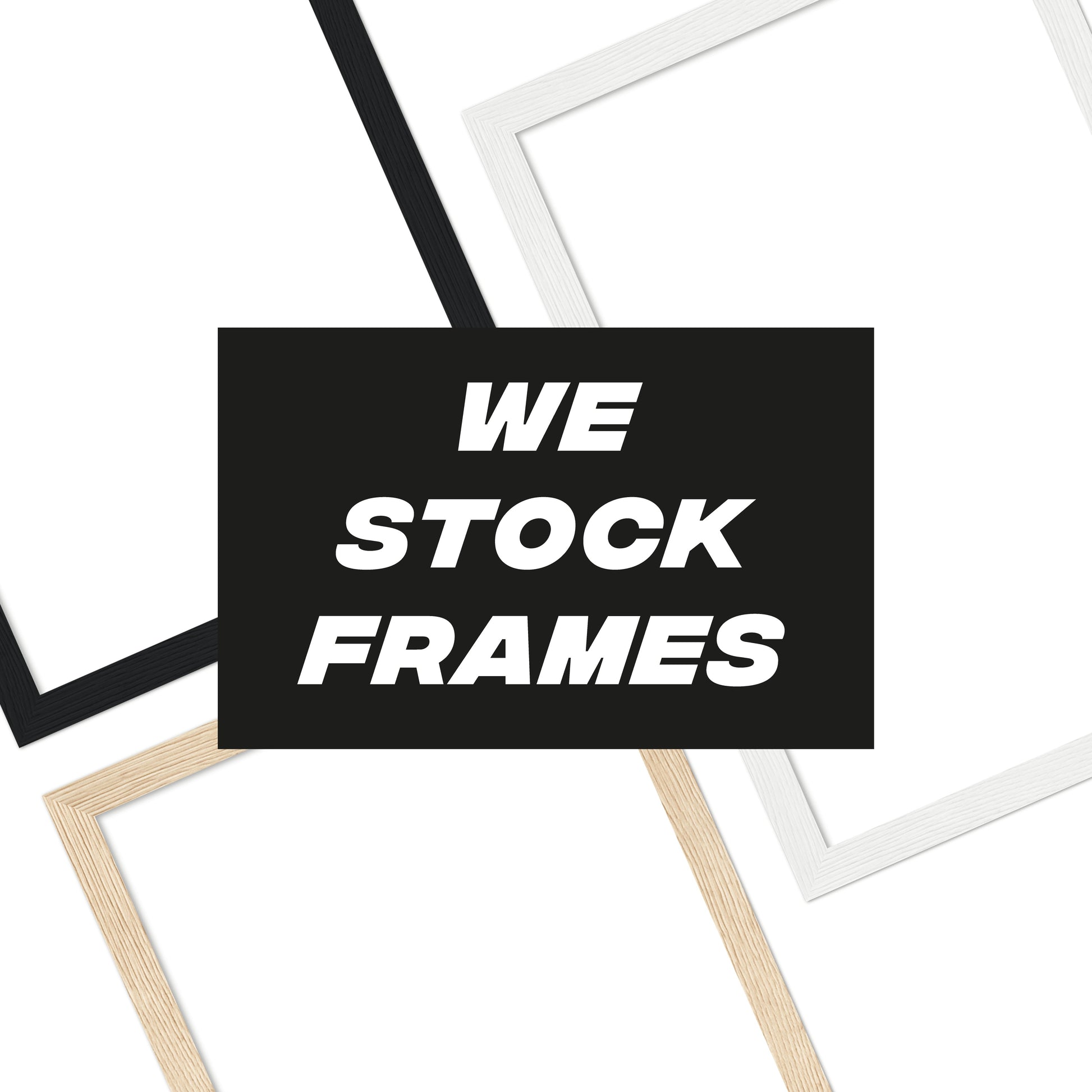 Frame your print with our fantastic choice of wooden frames. Available in 4 colours - black, white, dark wood and wood. Just pick your frame from the options above and your print will arrive framed and ready to hang on the wall.