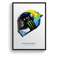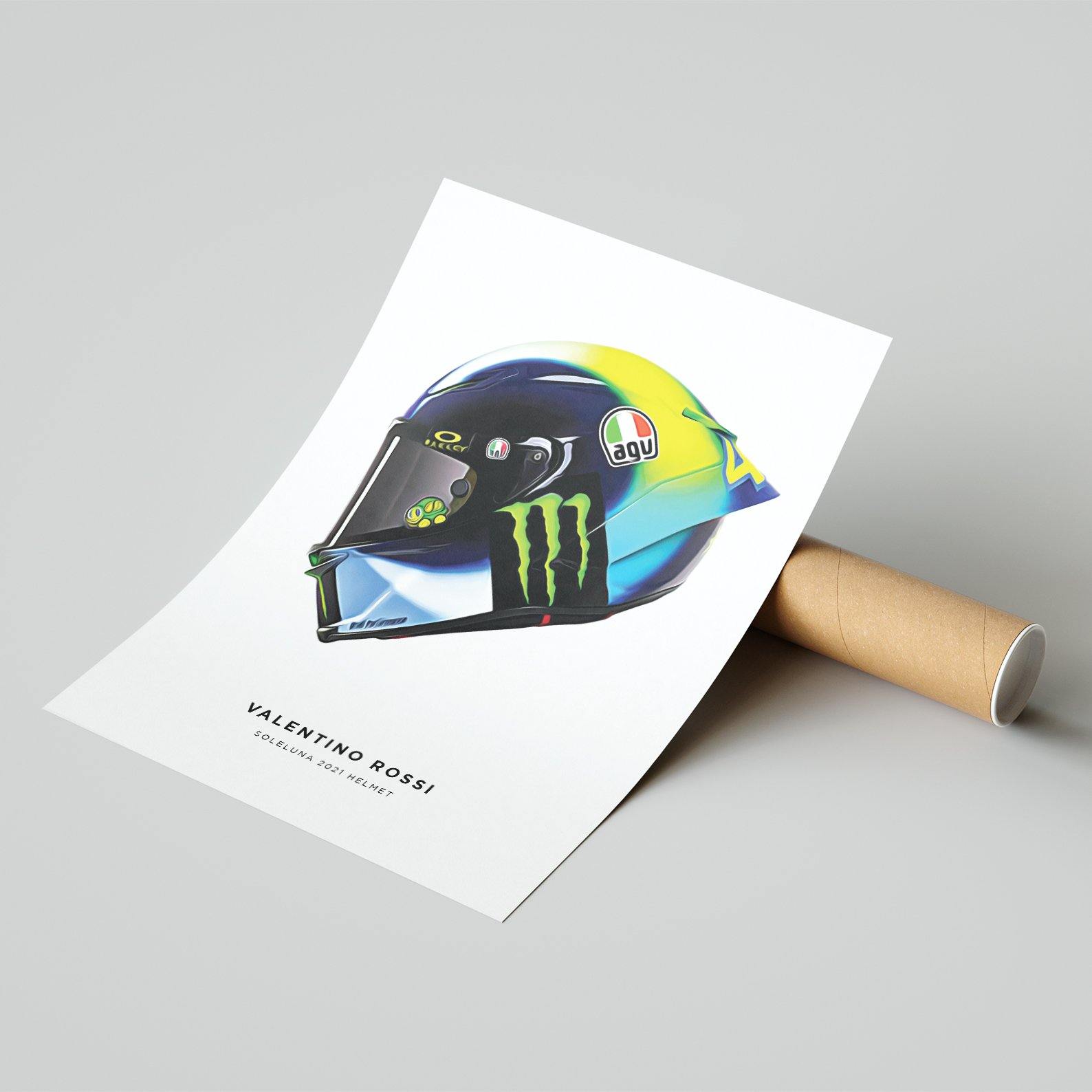 This print showcases Valentino Rossi's 2021 MotoGP season helmet and is the perfect print for any fan of the legendary Italian motorcycle rider. This print would look great in your home, office or garage or it could make the perfect gift for the MotoGP fan in your life.