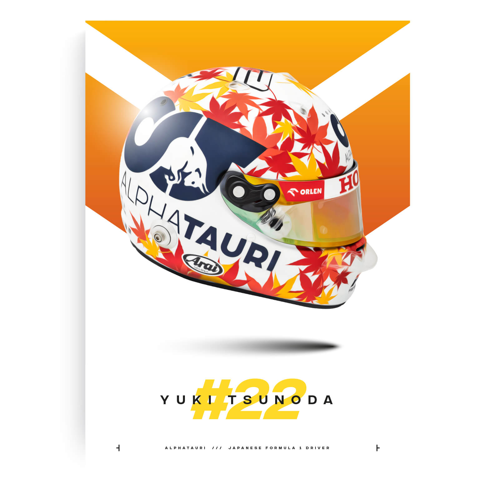Introducing this stunning print of Yuki Tsunoda's Formula 1 helmet for the 2023 F1 season! This vibrant and detailed print showcases Tsunoda's signature helmet design with meticulous accuracy and acknowledges Tsunoda's Japanese heritage and his 2023 team, AlphaTauri.